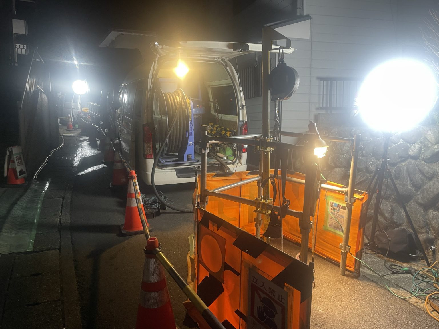 年明けの1月6日から着工 している夜間の管更生工事! 老朽化した下水道管の中に 新しい管を取り付けます。 やっと半分過ぎたあたり! まだまだ先は長いけど 今日の夜は、雨で中止かな?(>_<) 施工 三友興産株式会社