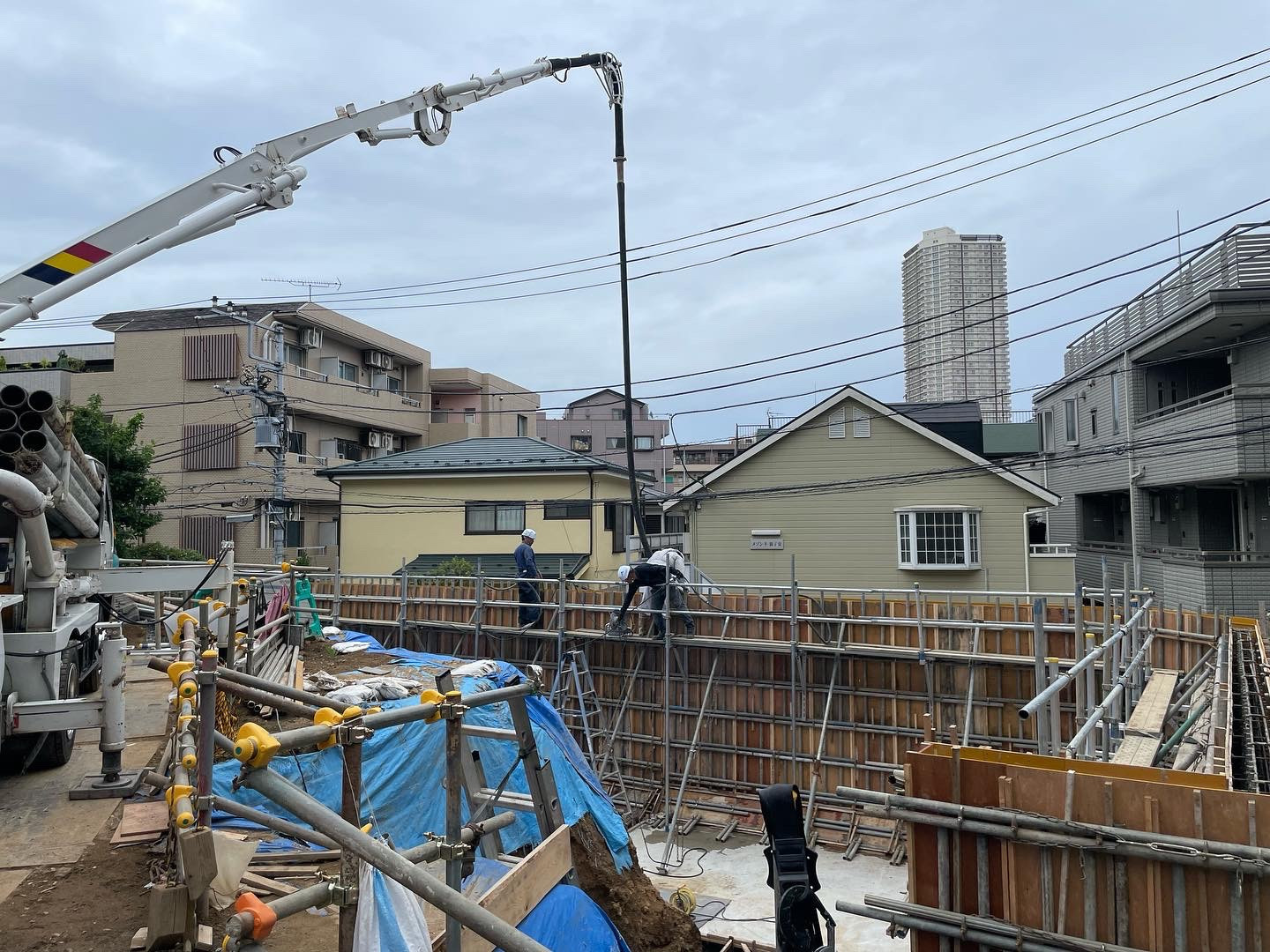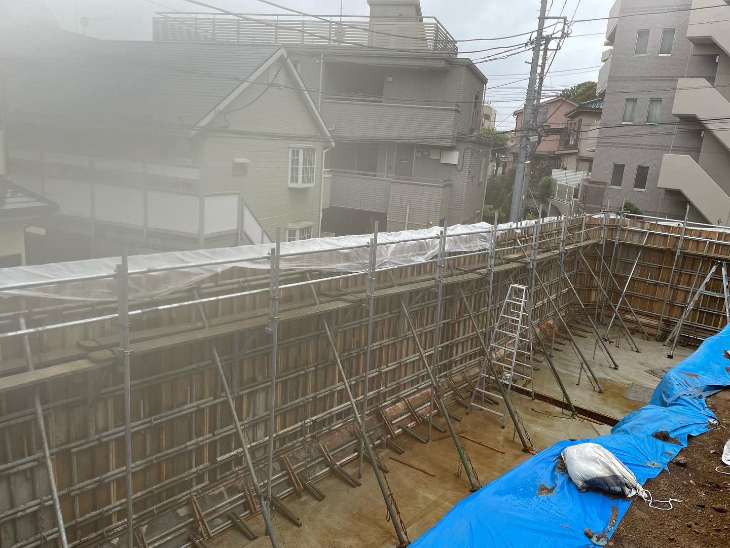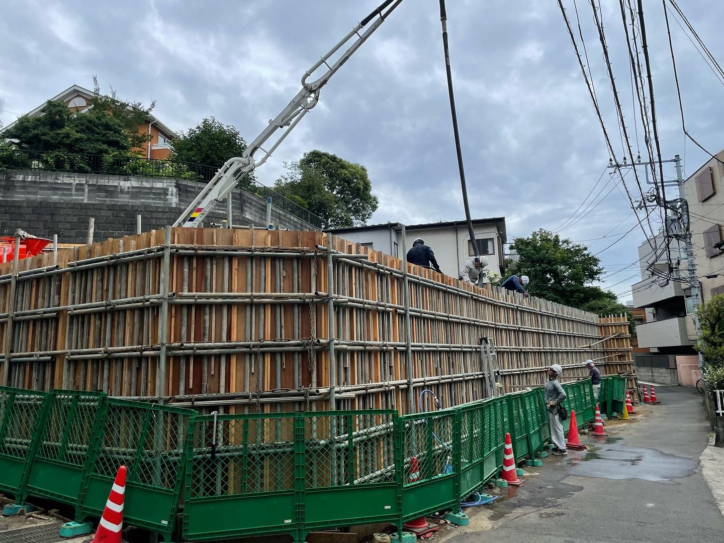 今日は横浜の現場にて 擁壁の躯体コンクリートの打設! またまた人手不足! 4人で休憩無で56m3! 雨もつかなと思いつつ、 小雨に降られて 泥だらけ!コンクリートだらけ!