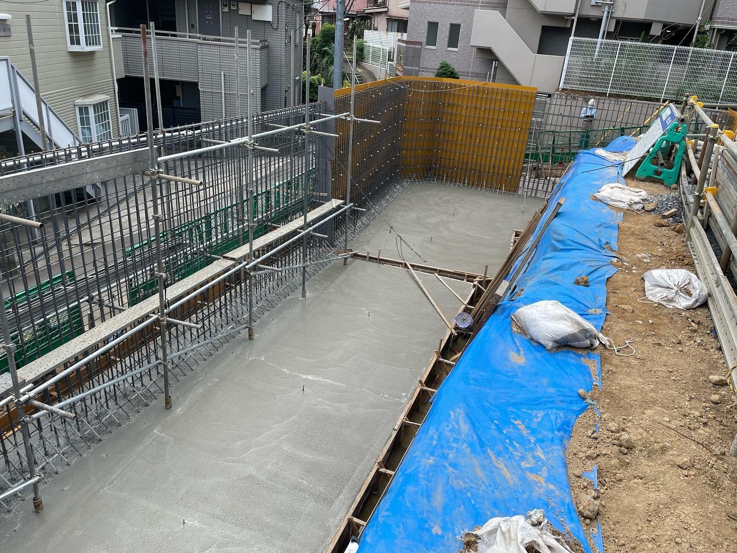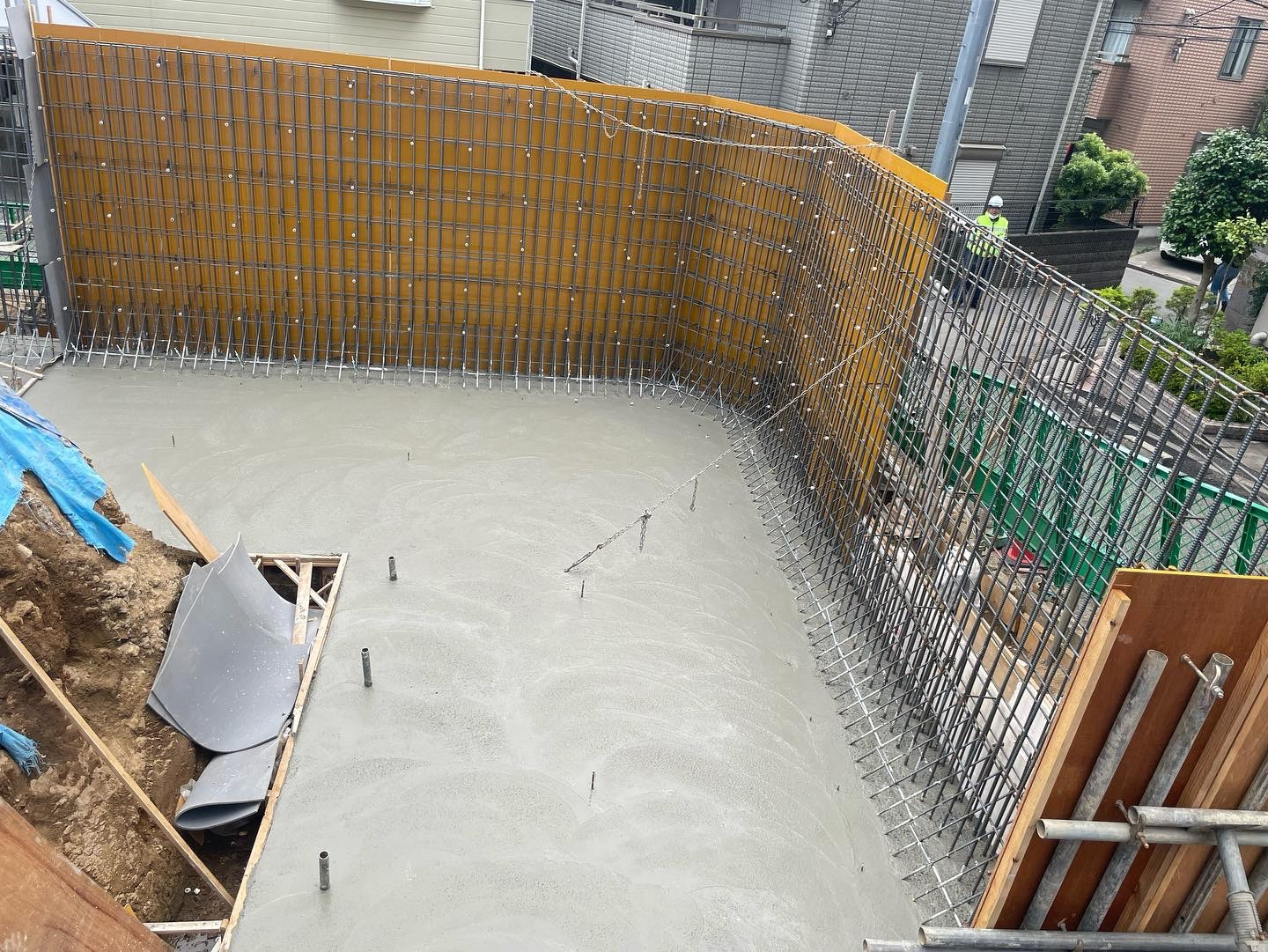 今日は横浜の現場にて 擁壁のベースコンクリートの 打設です。 擁壁の高さは4m ベースの高さも50cm 久しぶりの大型擁壁! 人手が足りず、自分いれて 3人のみで! さすがにしんどい!(^^;;