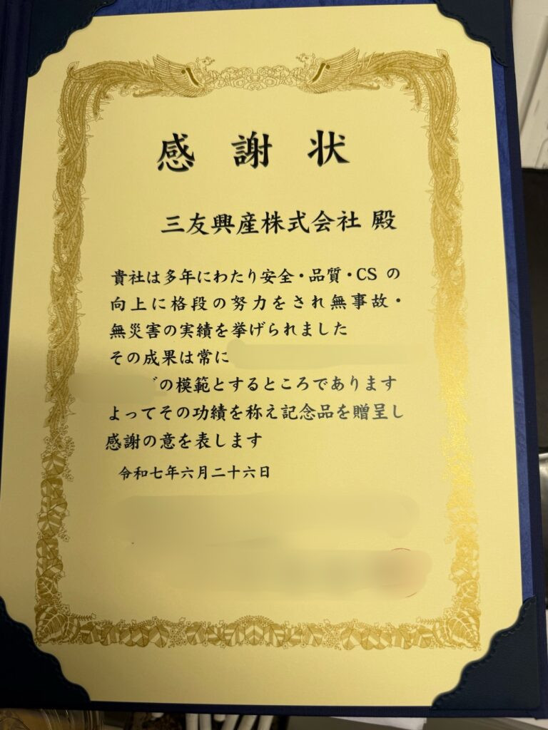 安全表彰を頂きました!